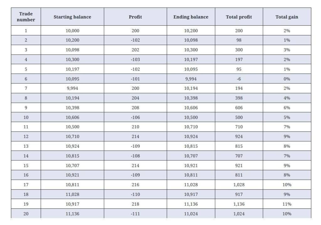 Even with a 50% win rate, it is possible to stay around 10% profitable over 20 trades.